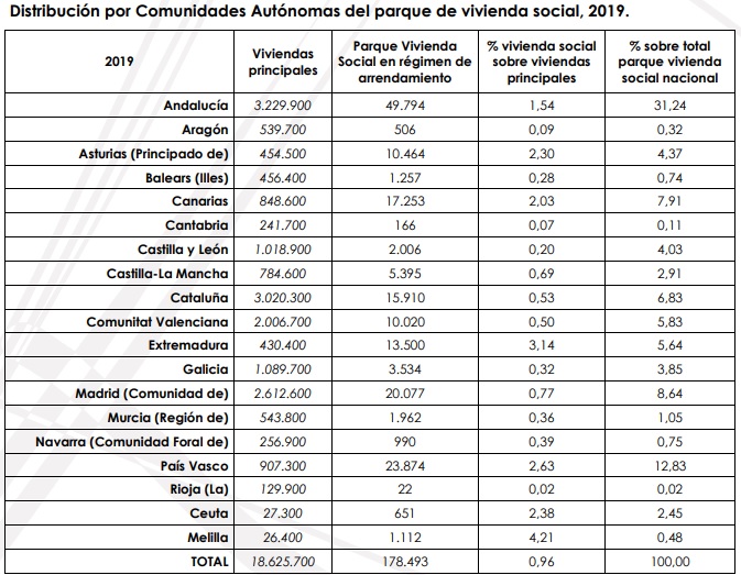 Fonte: Boletín especial de Vivienda Social 2020. MITMA