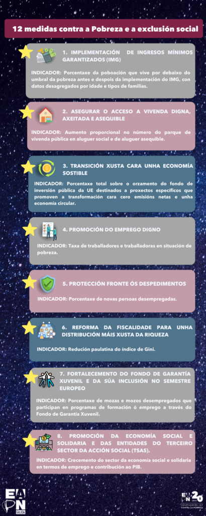 Podes consultar toda esta información amplificada e outros datos do documento “Impacto das Políticas Europeas en clave Galega”, de EAPN Galicia e tamén na páxina web de EAPN España.