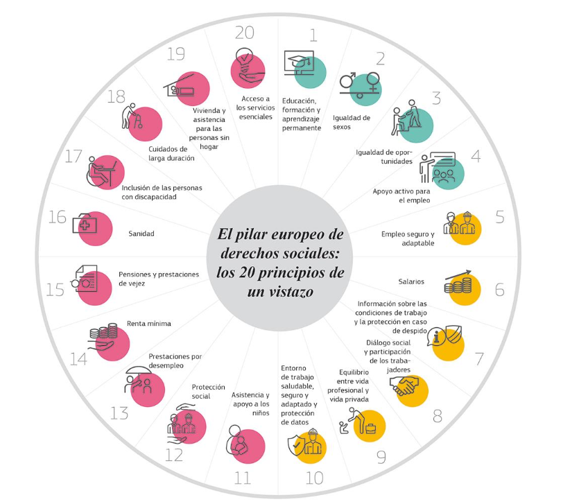 A Unión Europea conta con instrumentos para loitar contra a pobreza, como o Piar Europeo de Dereitos Sociais lanzado en 2017, que establece 20 principios básicos centrados en garantir unhas condicións de vida dignas para a cidadanía agrupados en 3 grandes áreas: a igualdade de oportunidades e de acceso ao mercado laboral, a protección e inclusión social adecuada, e condicións de traballo xustas e seguras.