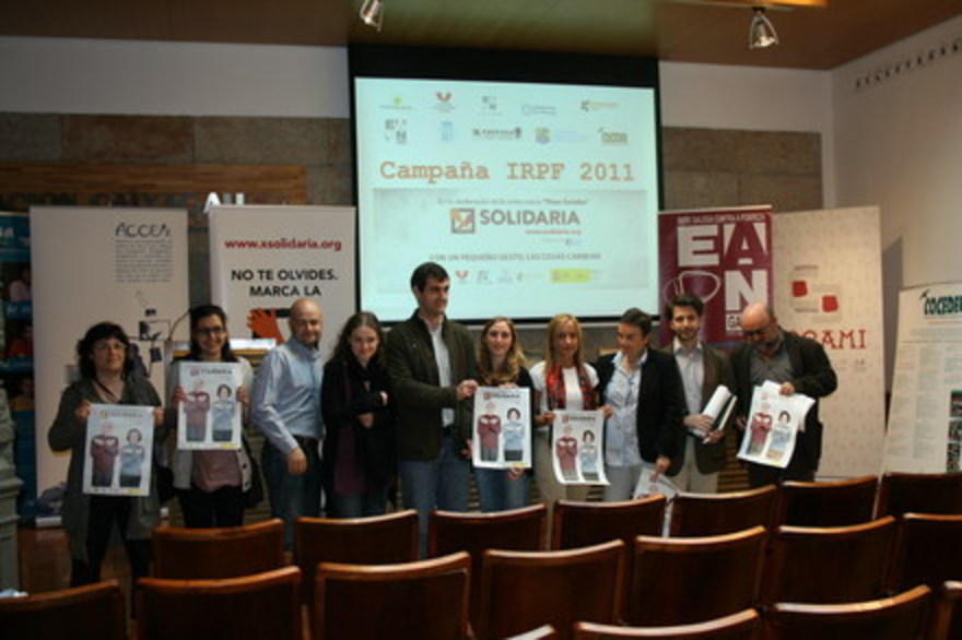 Representantes de 187 organizacións non lucrativas galegas presentamos a Campaña XSolidaria que cada ano se leva a cabo para incidir na necesidade de marcar o cadro de Fins Sociais na Declaración da Renda e contribuír así, co 0,7% da súa cota íntegra, a programas dirixidos a colectivos en risco de pobreza e exclusión social.