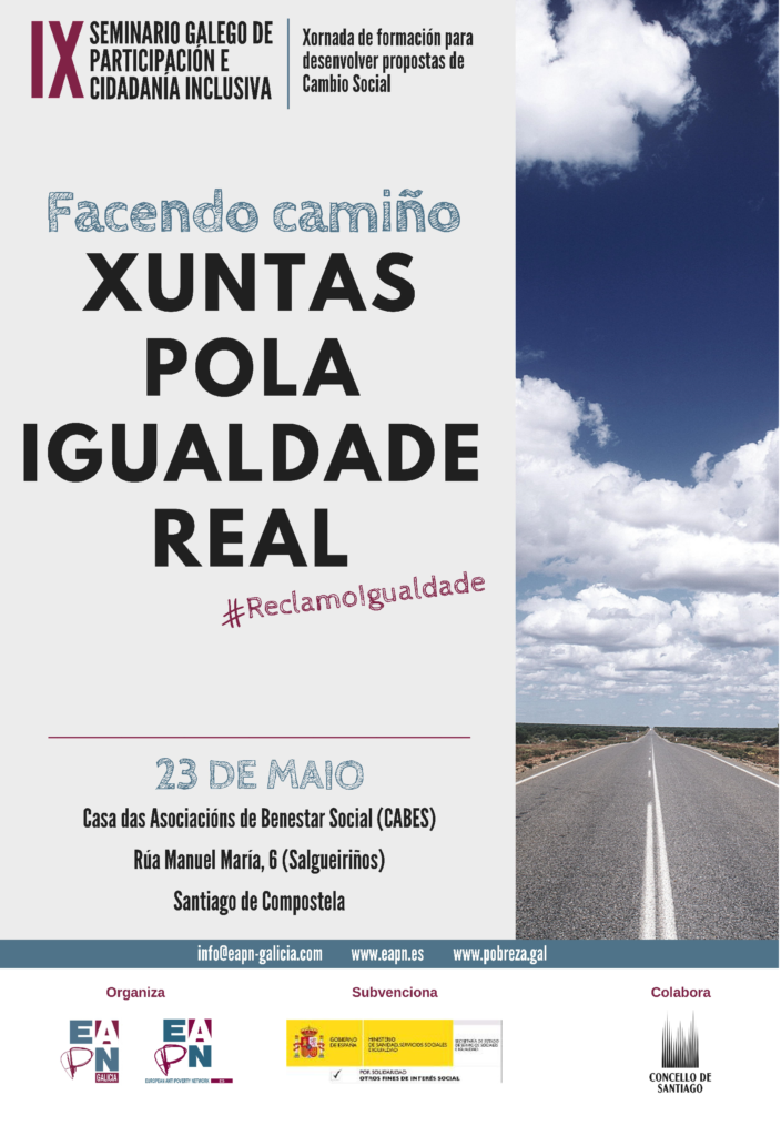 Baixo o lema “Facendo camiño: Xuntas pola igualdade real” e a etiqueta #ReclamoIgualdade EAPN-Galicia celebrou o pasado 23 de maio a novena edición do Seminario Galego de Participación e Cidadanía Inclusiva.