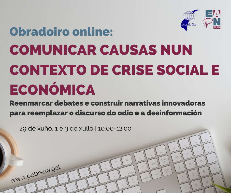Organizado polo Grupo de Comunicación de EAPN Galicia, trátase dun obradoiro sobre innovación narrativa para combatir o discurso do odio e a desinformación.