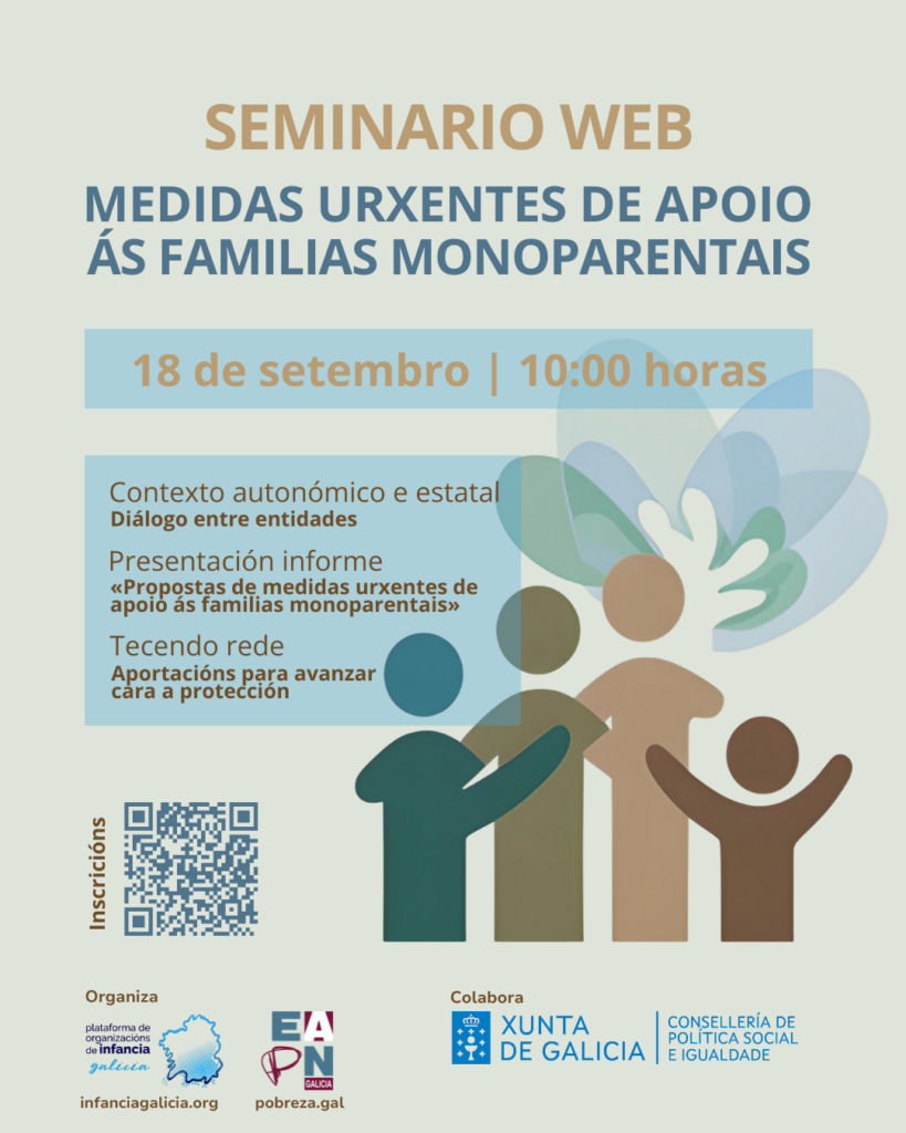 A Plataforma de Organizacións de Infancia de Galicia (POIG) e EAPN Galicia organizaron o 18 de setembro un seminario web adicado á realidade das familias monoparentais e ás demandas de impulsar urxentemente medidas de protección.