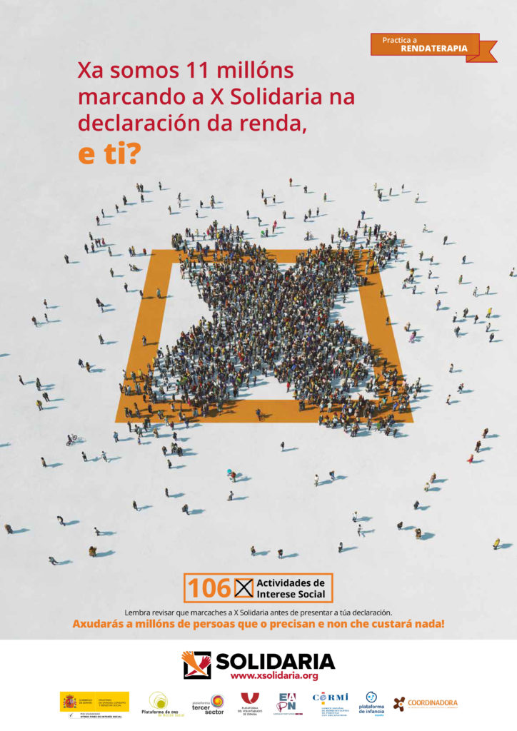 Marcar a X Solidaria non custa nada. Nin pagas máis, nin che devolverán menos.