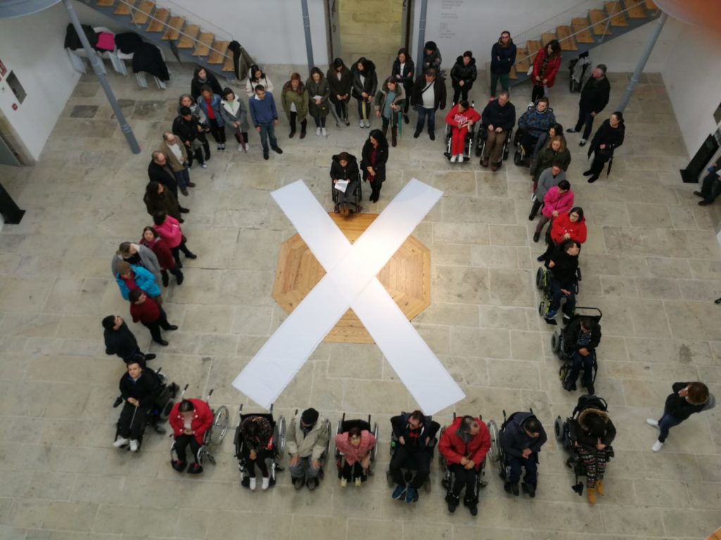 A vicepresidenta de EAPN-Galicia, Mónica Permuy e o presidente do CERMI Galicia, Iker Sertucha, explicaron neste acto a importancia de marcar a X, “que beneficia directamente a milleiros de persoas en Galicia como as que hoxe estan aquí”.