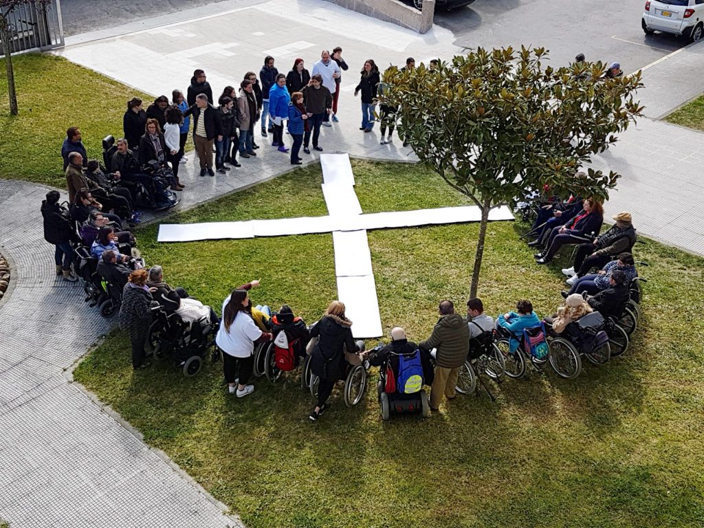 Santiago de Compostela acolleu está mañá a presentación da nova campaña da @XSolidaria, Máis de 200 persoas ‘debuxaron´ sobre o chan da Quintana a forma dunha casiña que rodeou unha X xigante Solidaria, visibilizando así a importancia de marcar a casiña de Fins Sociais na Declaración da Renda. A campaña presentouse tamén noutras localidades galegas como: A Mariña, Ferrol, Ourense, Lugo e Ribeira que replicaron o acto ó mesmo tempo con persoas beneficiarias da zona.