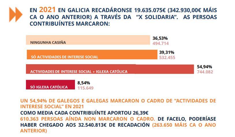 Se todas as galegas e galegos marcasen o X Solidario, a asignación final en Galicia sería de 32.540.813€, é dicir, 12.905.500€ máis dos recadados.